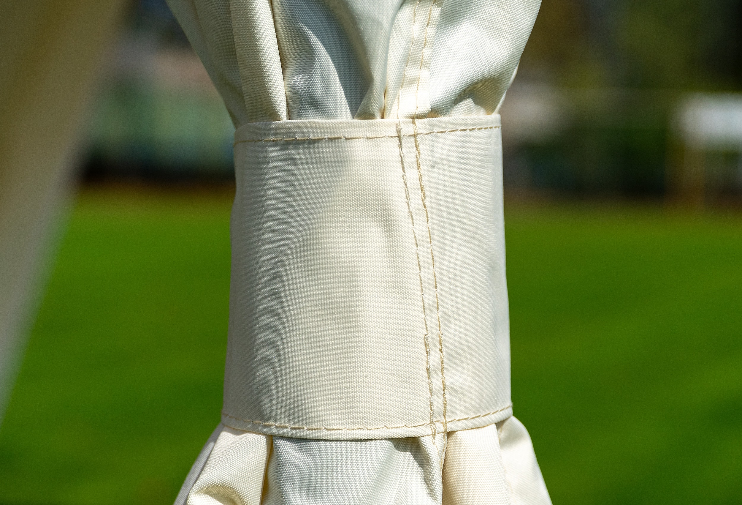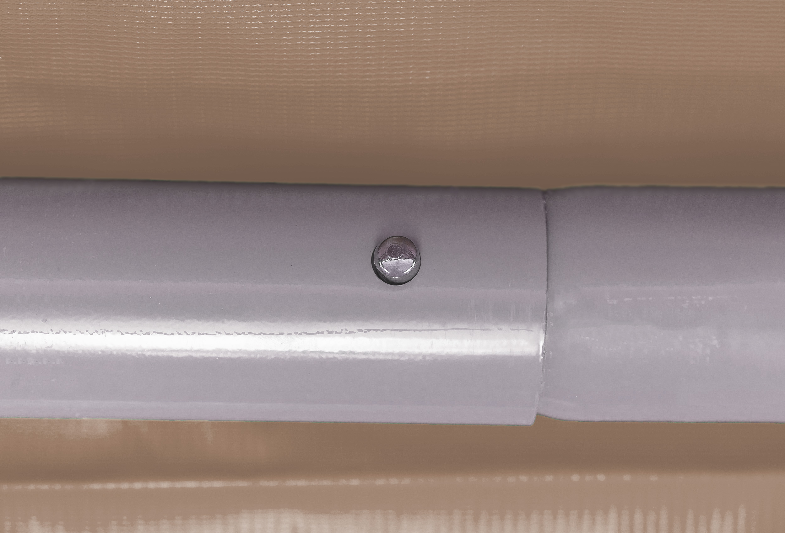 Thick 50 mm poles and connectors with 1.4 mm material thickness made of solid steel tube Robust and stable construction with high side and centre heights of 2.10 m and 3.10 m 5-year guarantee5) against rusting through - resistant powder coating of the finished welded parts baked at 200°CNo simple raw material galvanisation with repainted weld seams - no oil film or oxidised zinc Robust securing of the frame with bolts and nuts Removable steel base plates - these can be anchored in the ground with the enclosed accessories