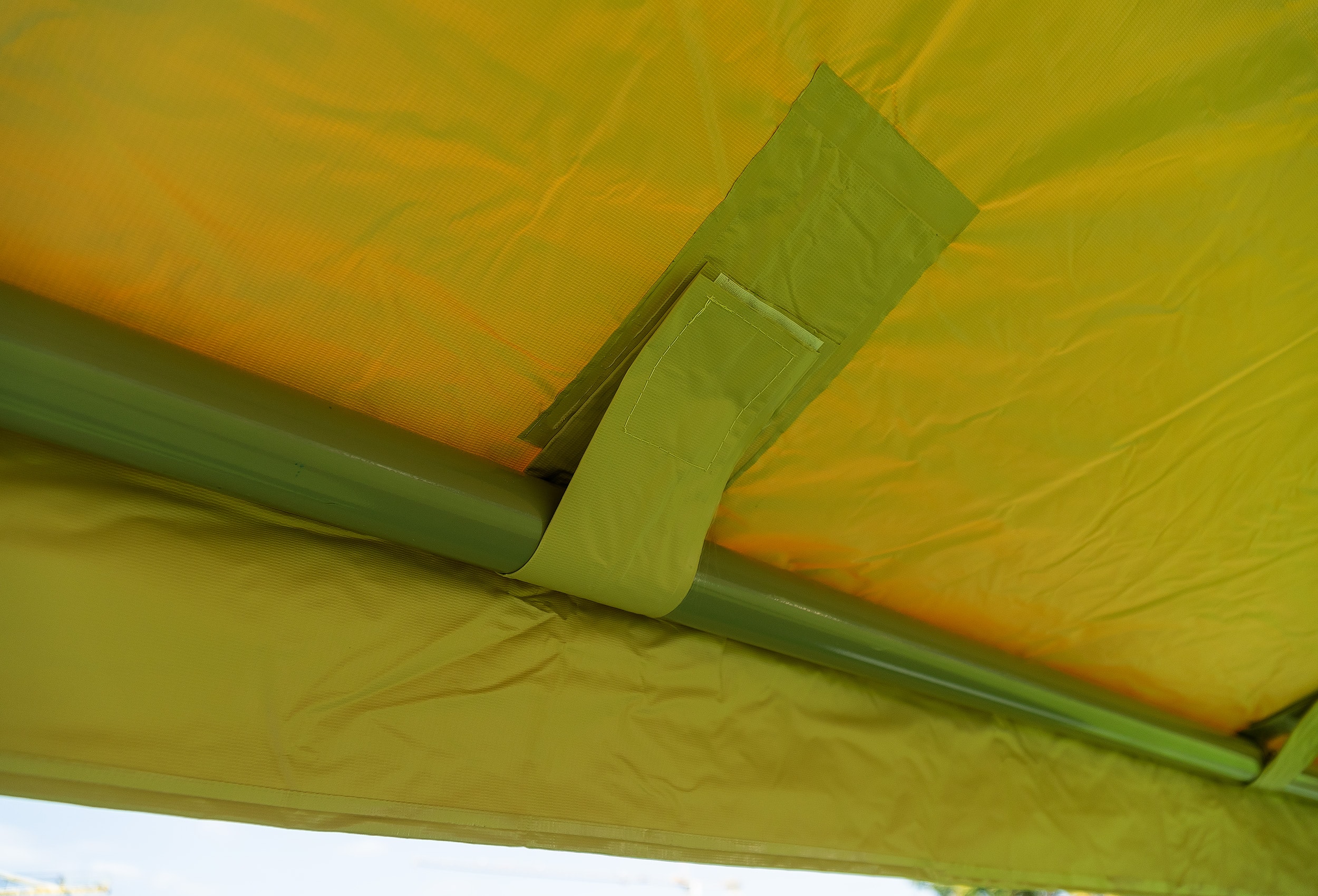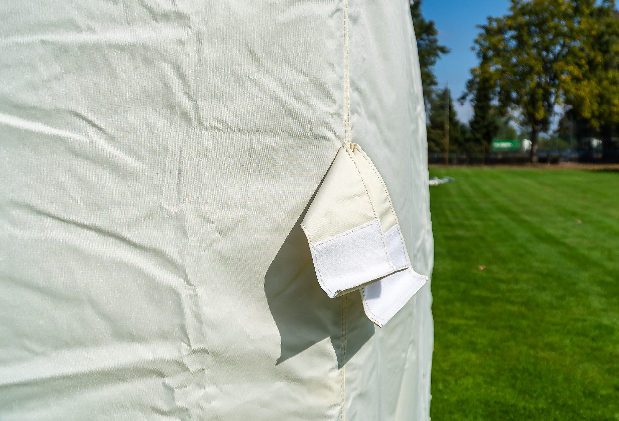 Quick and flexible assembly as required All tarpaulin parts close at the ground
