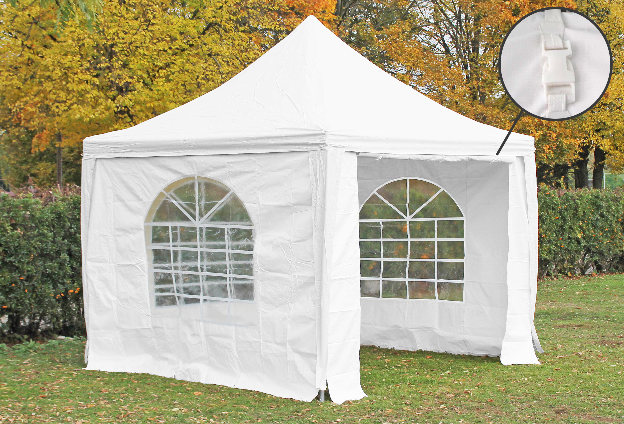 for regular or permanent use Genuine 400 g/m² material thickness of the roof tarpaulin and side sections made of premium PVC