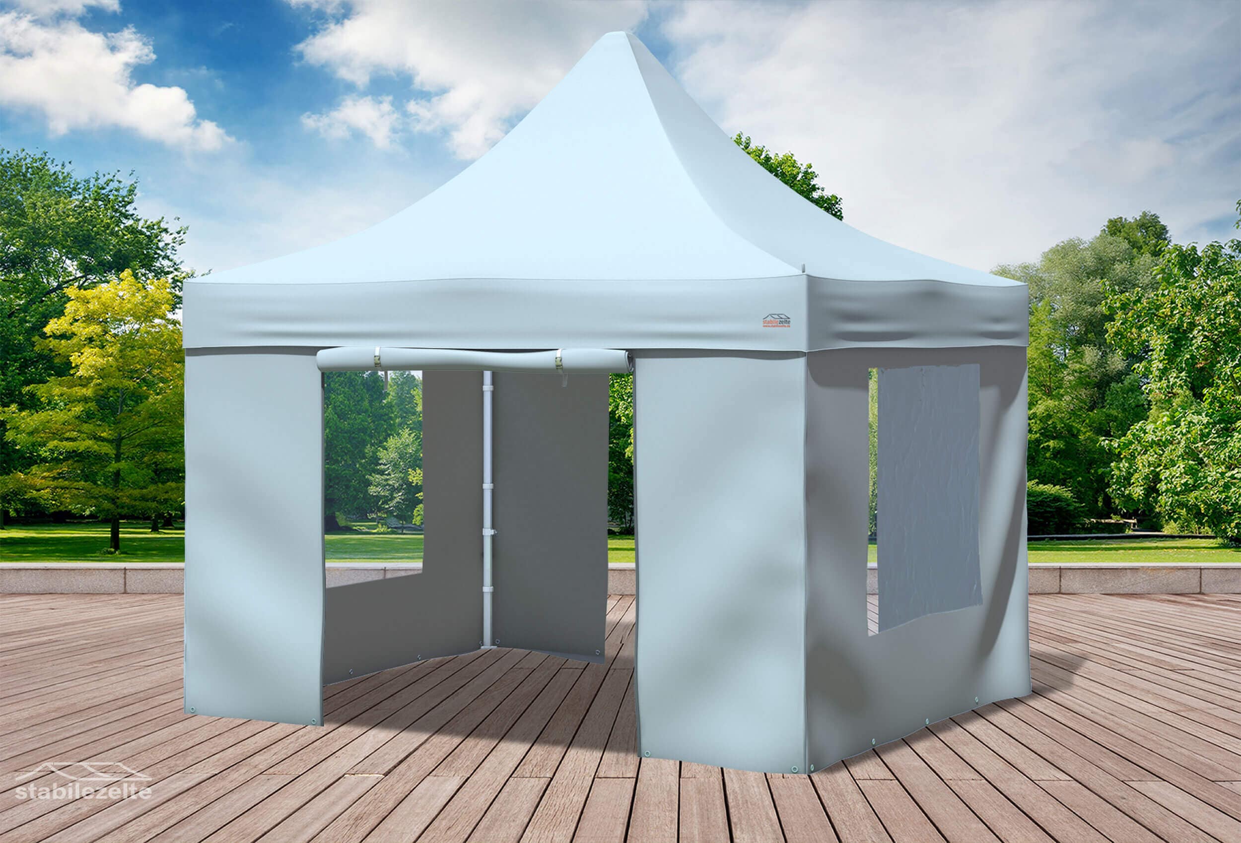 % €859.00 (9.78% saved)The PROFESSIONAL PLUS series for all professionals and stability fetishists. 56 mm hexagonal feet and die-cast aluminium connectors ensure maximum stability. Ribbed 38x20 mm scissor stays and a 100% waterproof roof tarpaulin mean that you will NOT be standing in the rain in almost any weather.