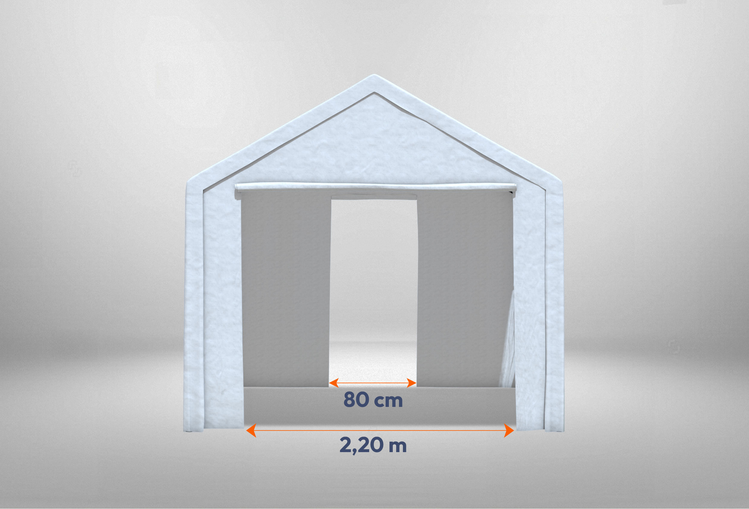 Waterproof - integrated draught stop Gable walls each with one narrow and one wide entrance for rolling up incl. adjustable Clip fastening and YKK zips
