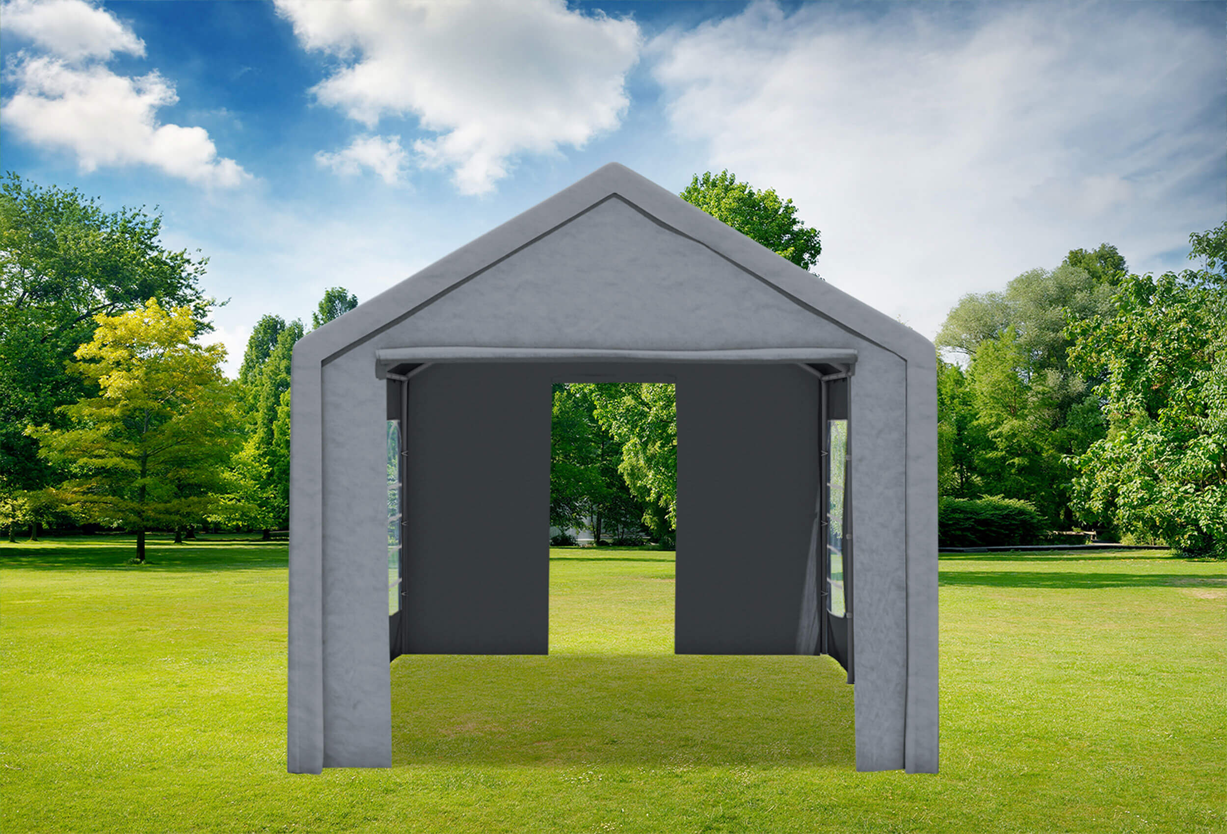 100% waterproof - all tarpaulins heat-weldedNo sewn PVC - no dripping seams Robust 400 g/m² material thickness of the roof tarpaulin and side sections made of Premium PVC