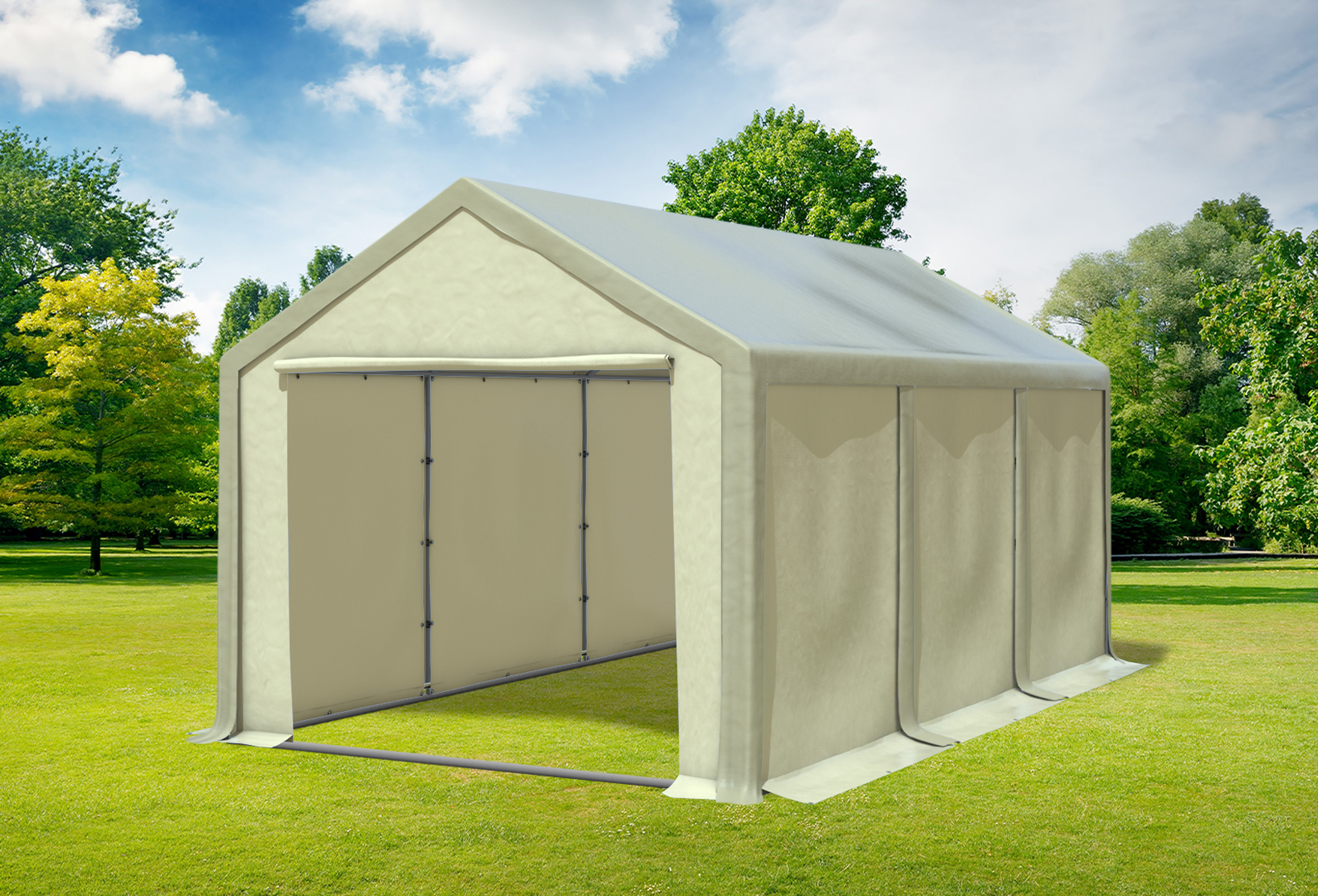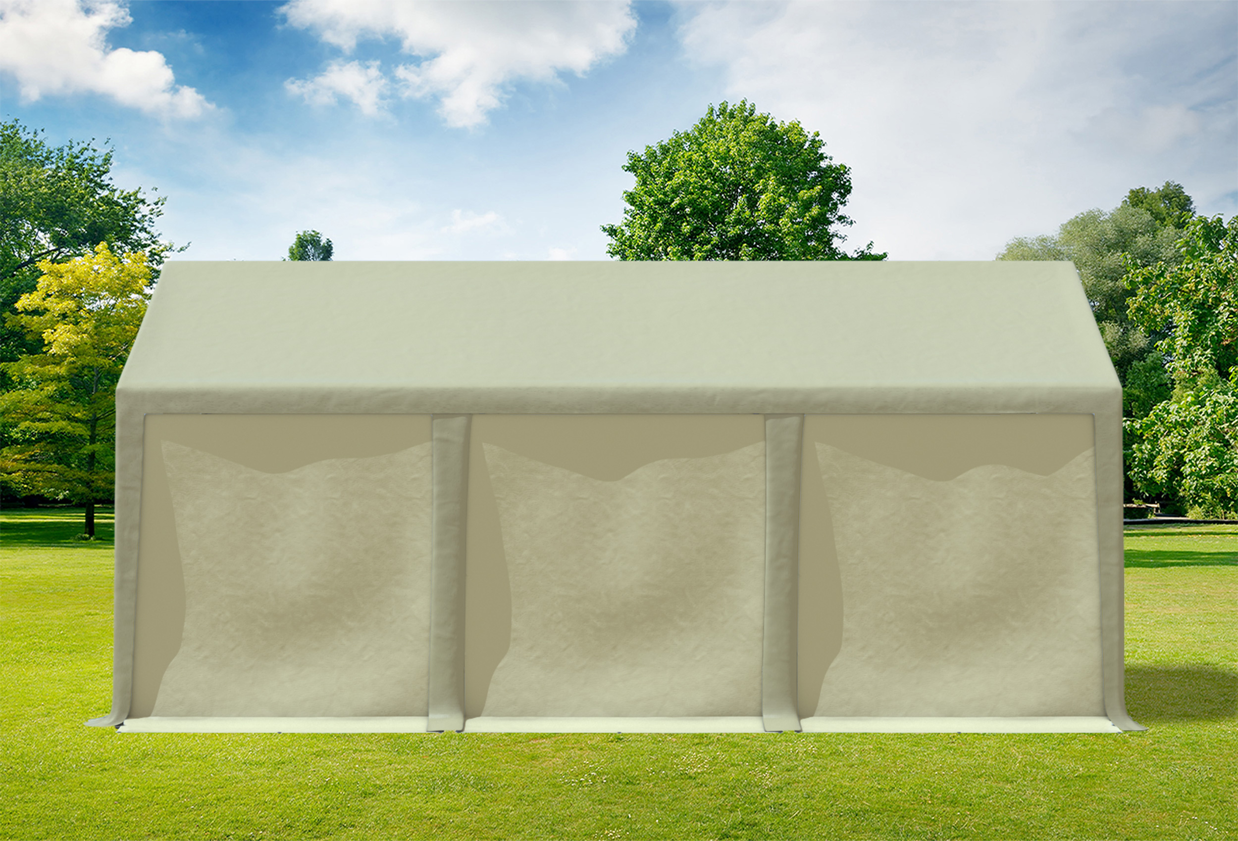 100 % waterproof - all tarpaulins heat-weldedNo sewn PVC - no dripping seams Strong 500 g/m² material thickness of the roof tarpaulin and side sections made of Professional PVC