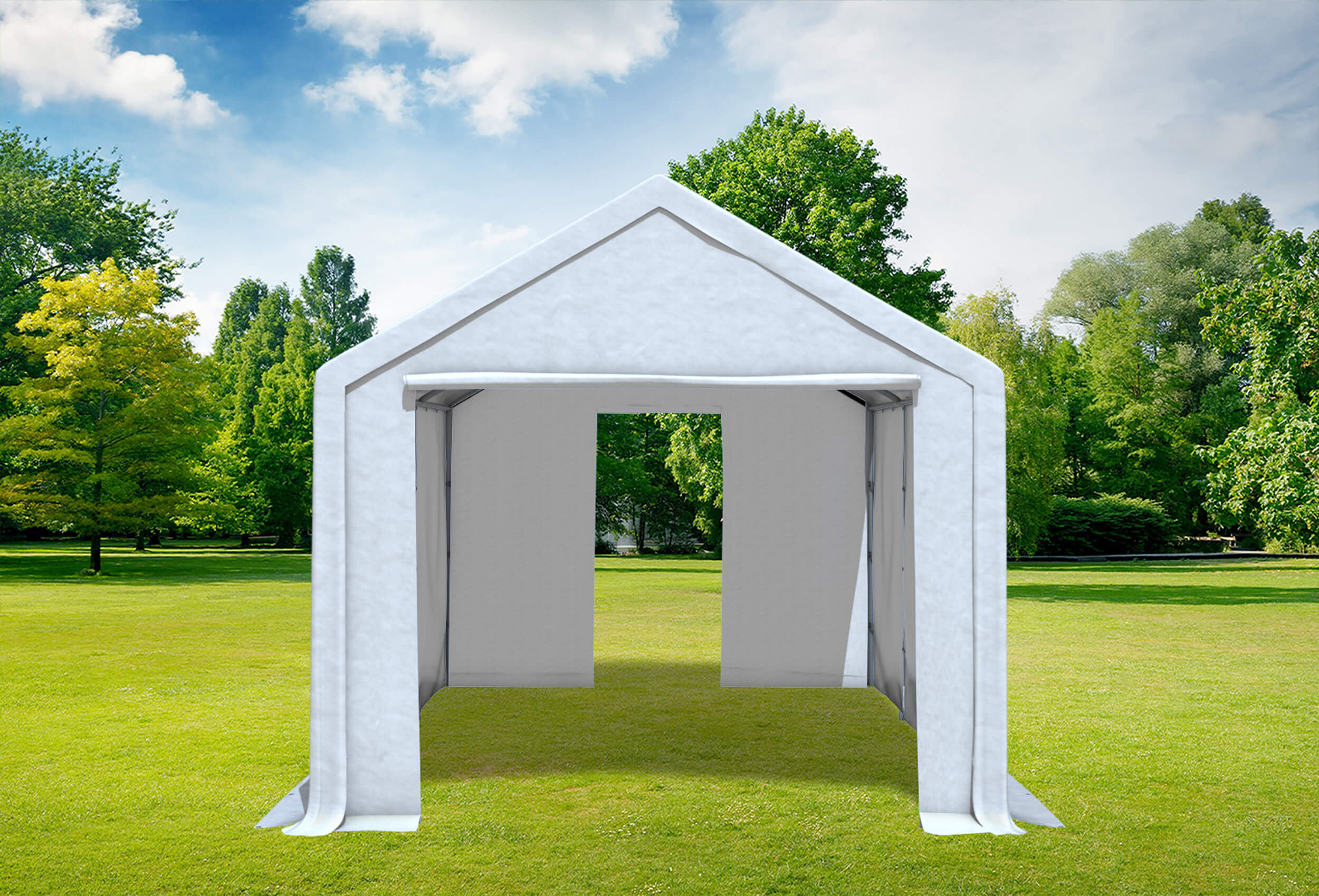 100 % waterproof - all tarpaulins heat-weldedNo sewn PVC - no dripping seams Strong 500 g/m² material thickness of the roof tarpaulin and side sections made of Professional PVC