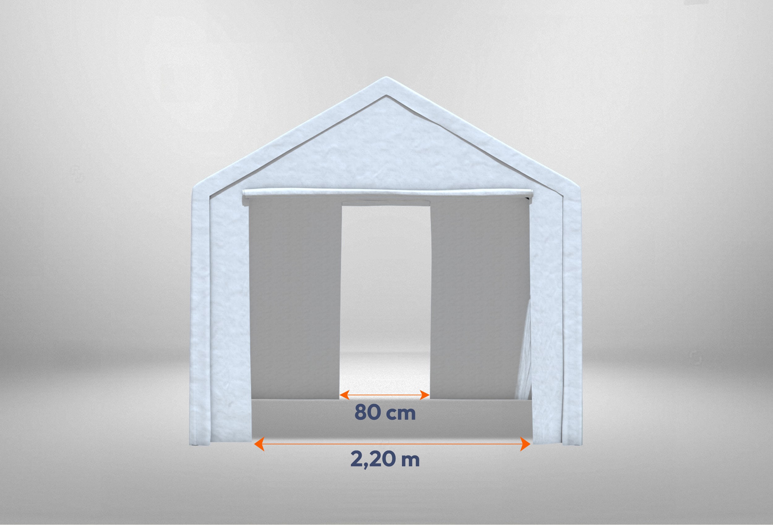 comparable to truck tarpaulin - glossy, smooth surface Roof tarpaulin in one piece - high stability 2 metre side walls for flexible entrances and use anywhere