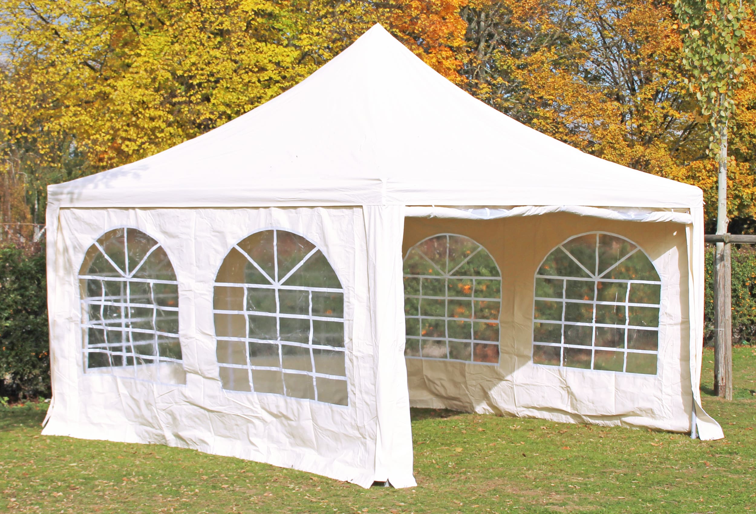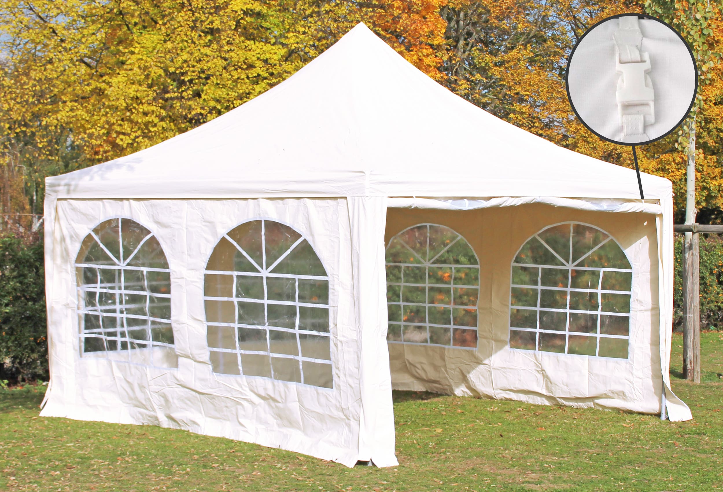 for regular or permanent use Genuine 400 g/m² material thickness of the roof tarpaulin and side sections made of premium PVC