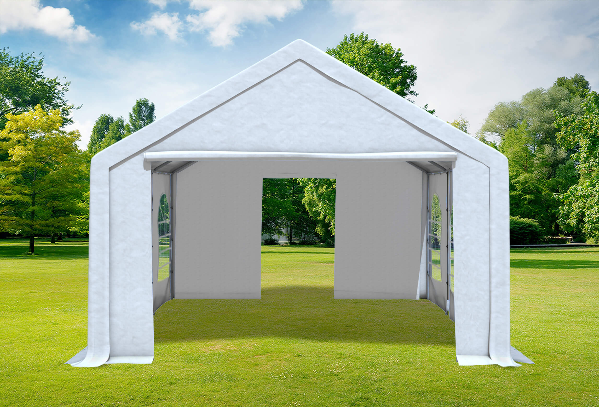 100 % waterproof - all tarpaulins heat-weldedNo sewn PVC - no dripping seams Strong 500 g/m² material thickness of the roof tarpaulin and side sections made of Professional PVC