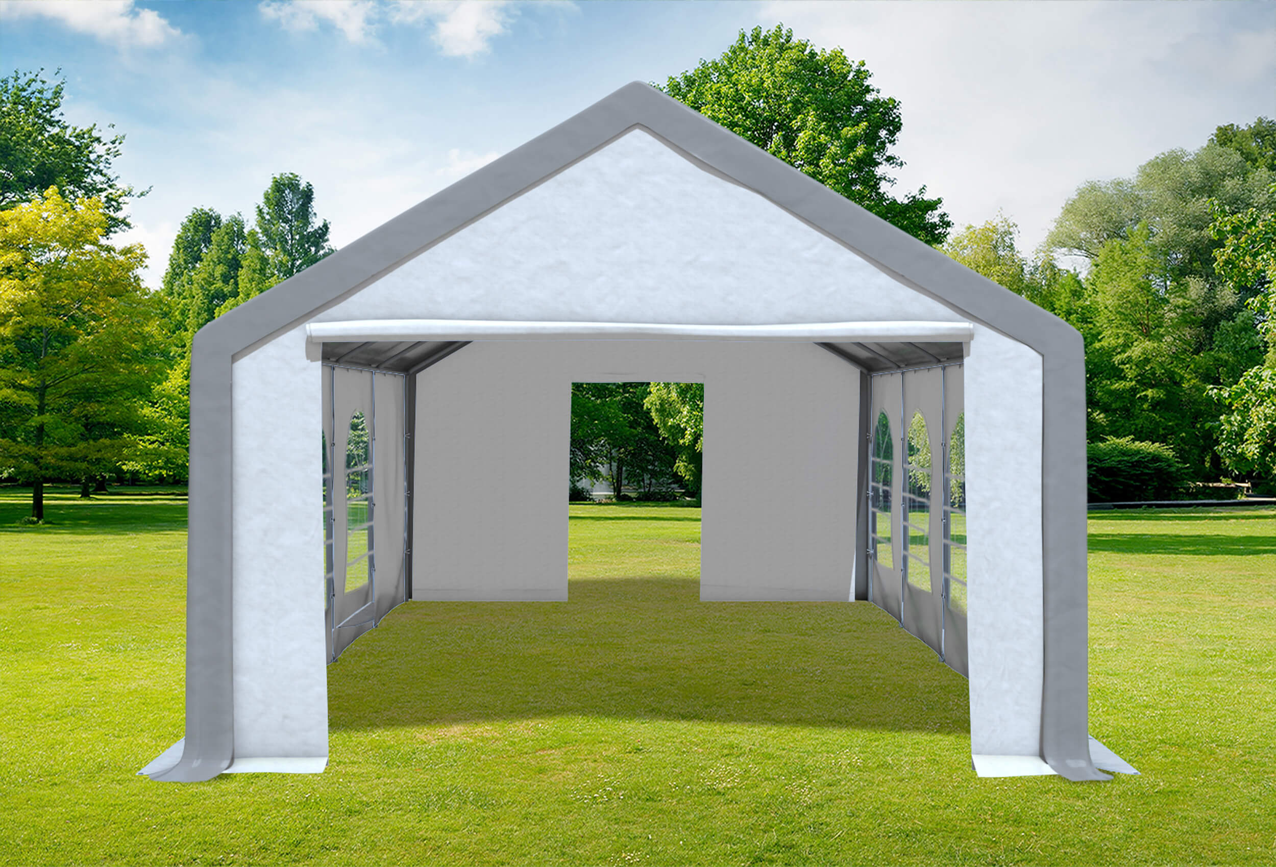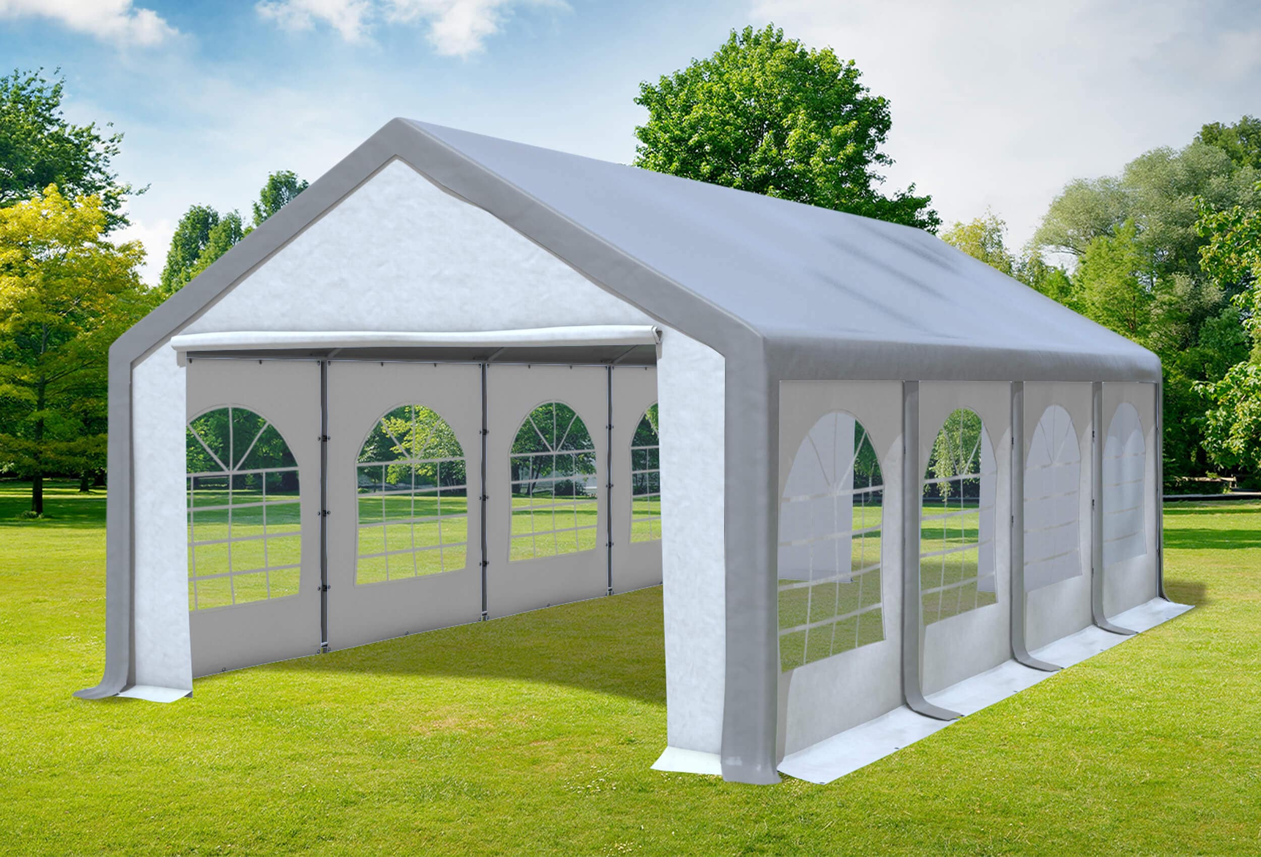No sagging of the roof tarpaulin Removable steel base plates - these can be anchored to the ground with the enclosed accessories