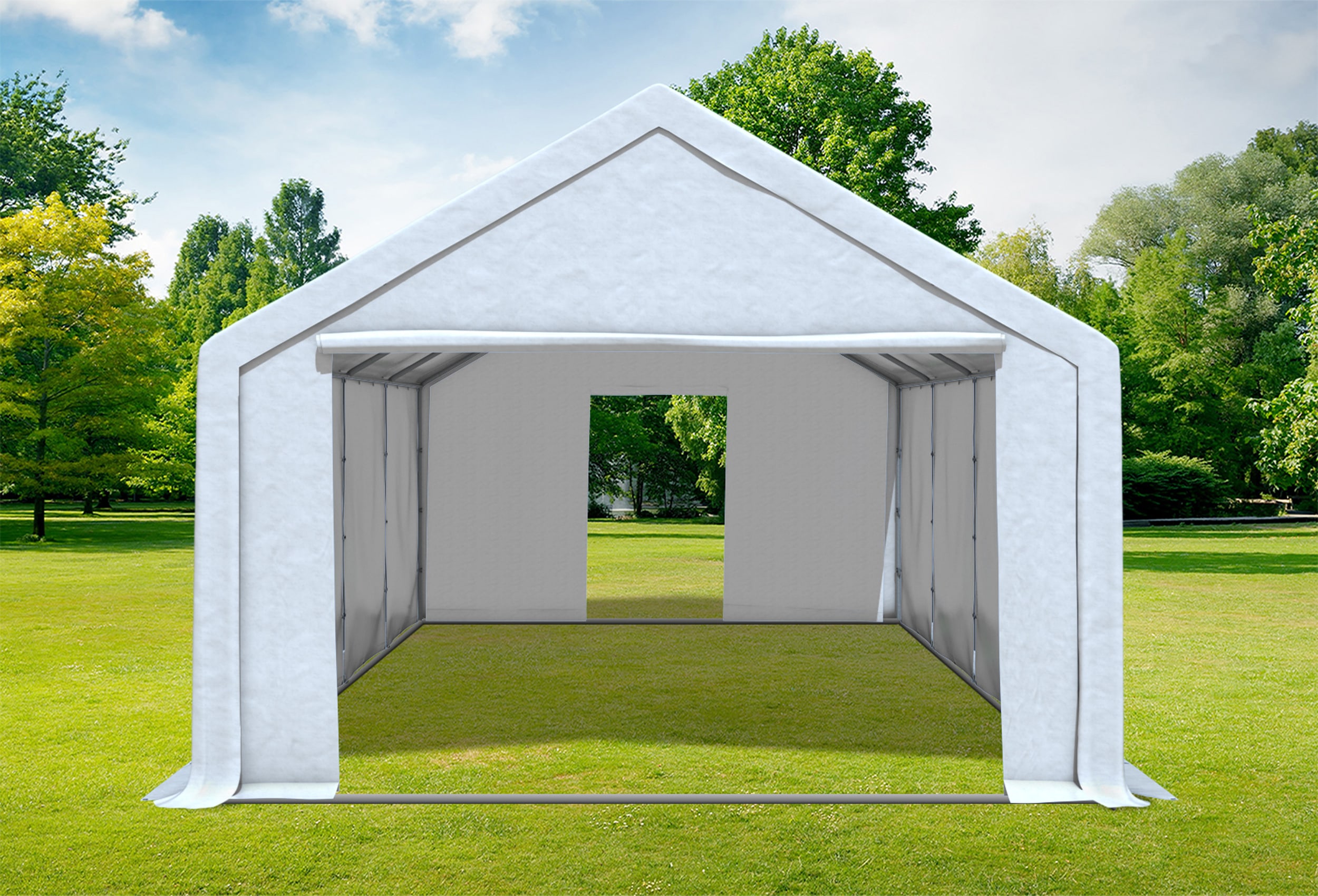 100 % waterproof - all tarpaulins heat-weldedNo sewn PVC - no dripping seams Strong 500 g/m² material thickness of the roof tarpaulin and side sections made of Professional PVC