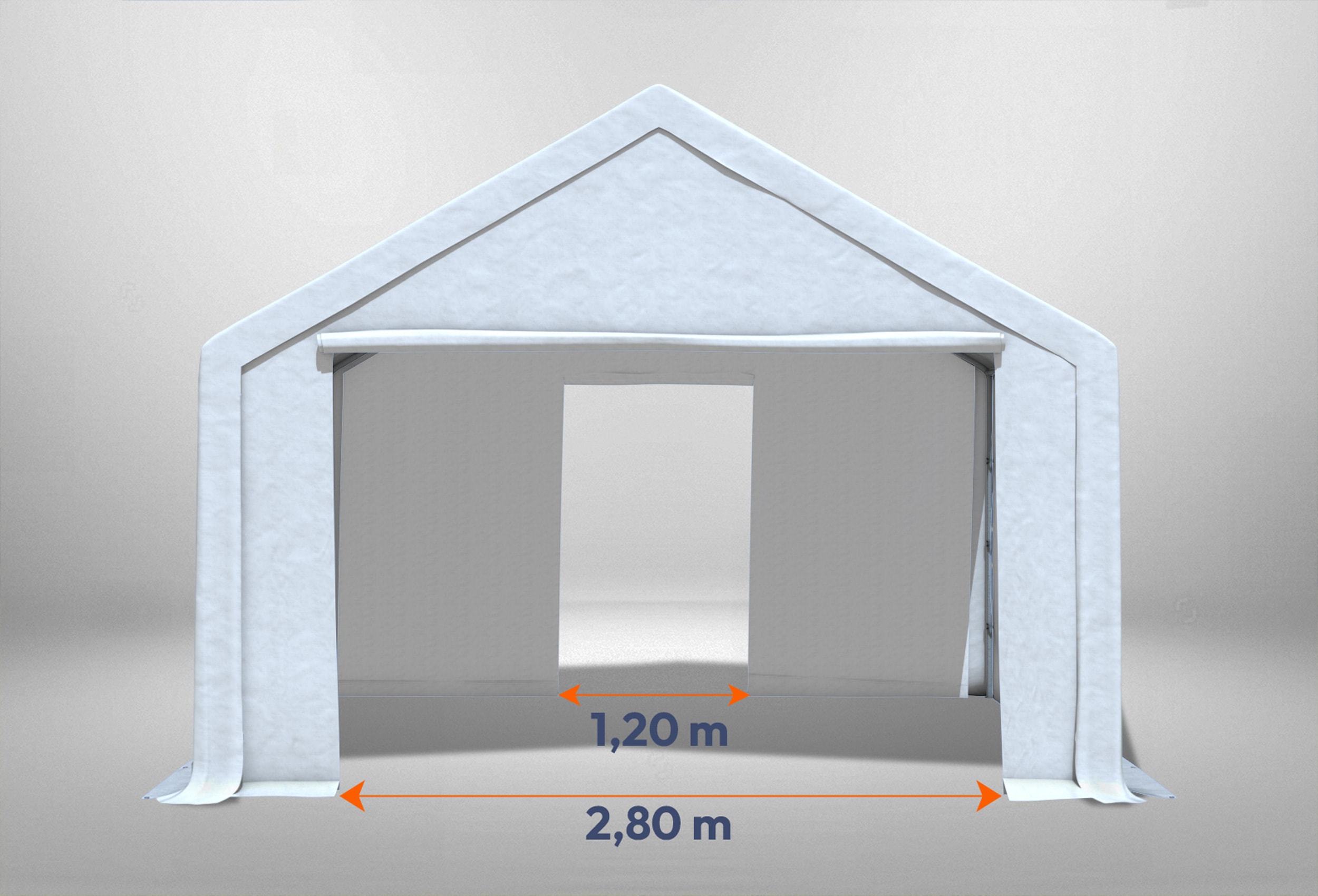 comparable to truck tarpaulin - glossy, smooth surface Roof tarpaulin in one piece - high stability 2 metre side walls for flexible entrances and use anywhere