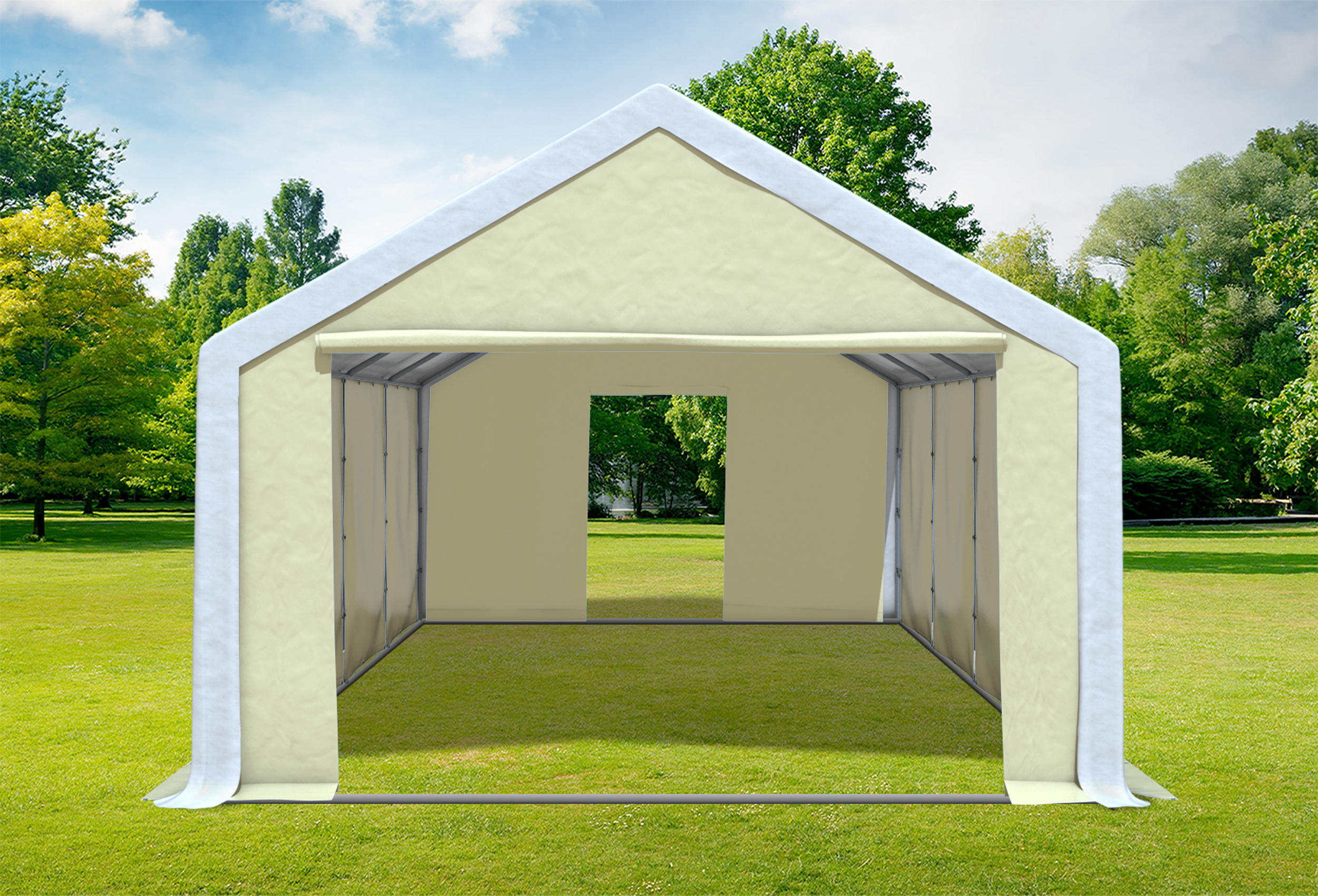 100 % waterproof - all tarpaulins heat-weldedNo sewn PVC - no dripping seams Strong 500 g/m² material thickness of the roof tarpaulin and side sections made of Professional PVC