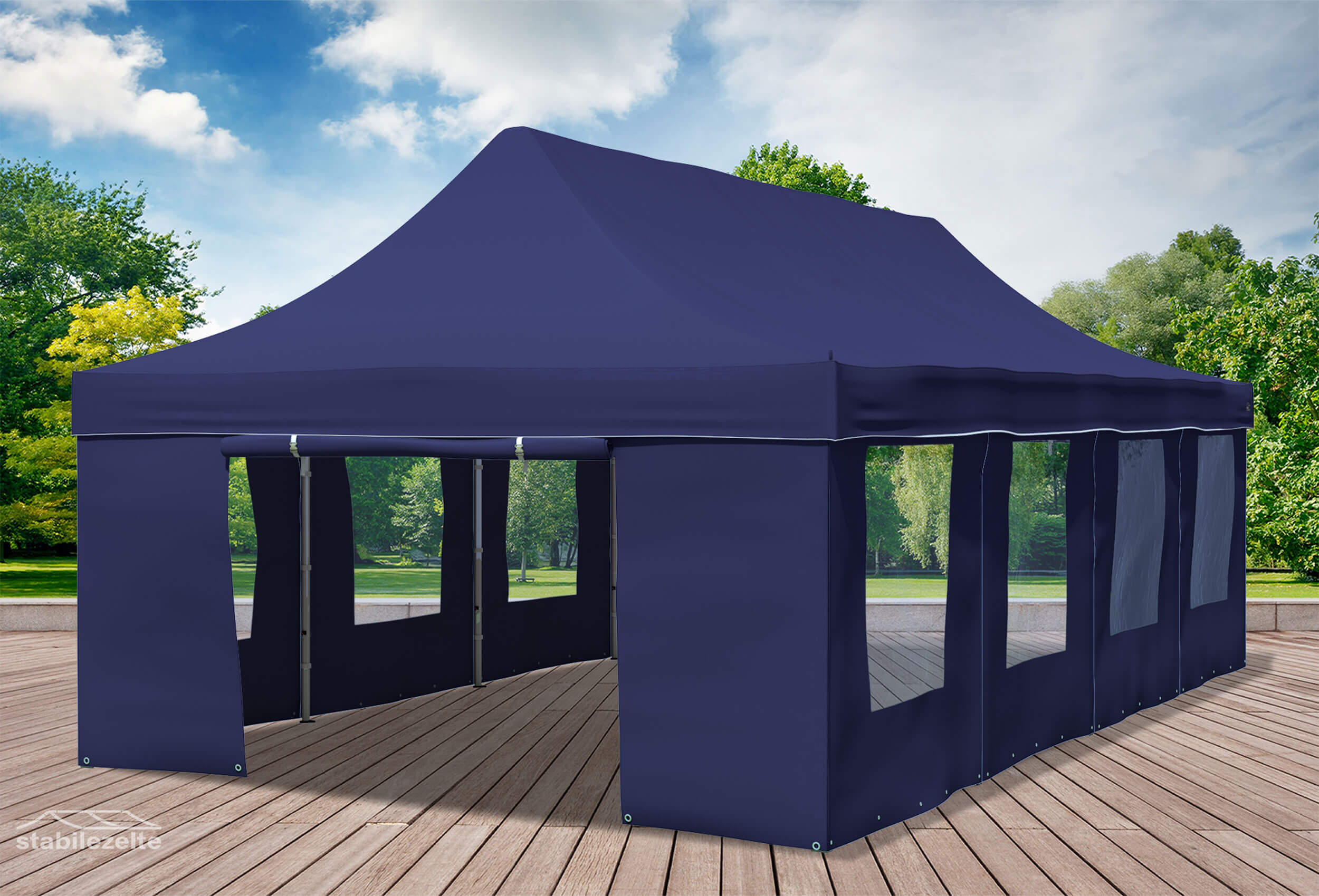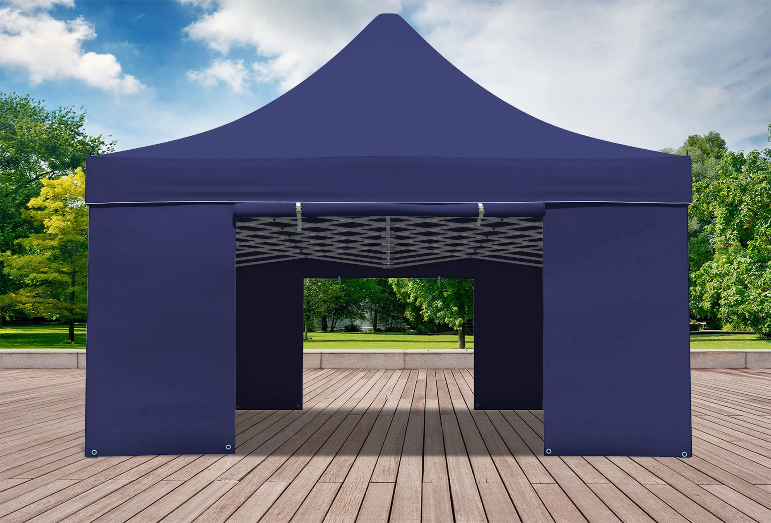 % €1,659.00 (9.64% saved) 30-days-bestprice: €1,569.00The PROFESSIONAL PLUS series for all professionals and stability fetishists. 56 mm hexagonal feet and die-cast aluminium connectors ensure maximum stability. Ribbed 38x20 mm scissor stays and a 100% waterproof roof tarpaulin mean that you will NOT be standing in the rain in almost any weather.