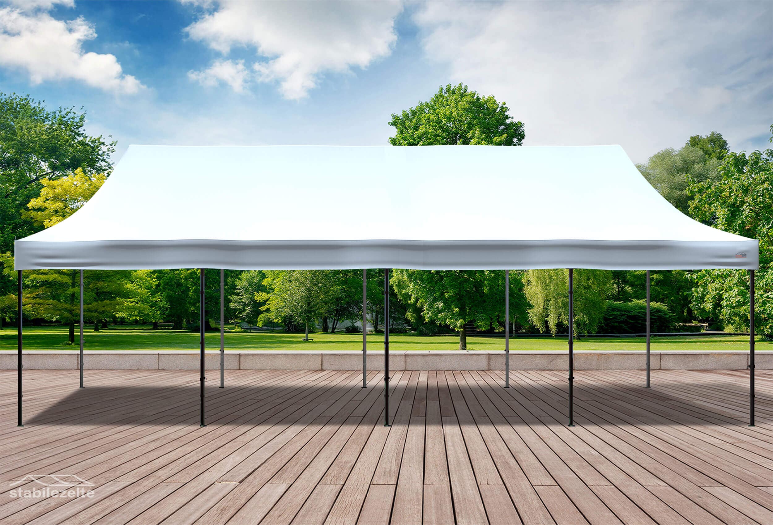 % €1,469.00 (10.21% saved) 30-days-bestprice: €1,379.00The PROFESSIONAL PLUS series for all professionals and stability fetishists. 56 mm hexagonal feet and die-cast aluminium connectors ensure maximum stability. Ribbed 38x20 mm scissor stays and a 100% waterproof roof tarpaulin mean that you will NOT be standing in the rain in almost any weather.
