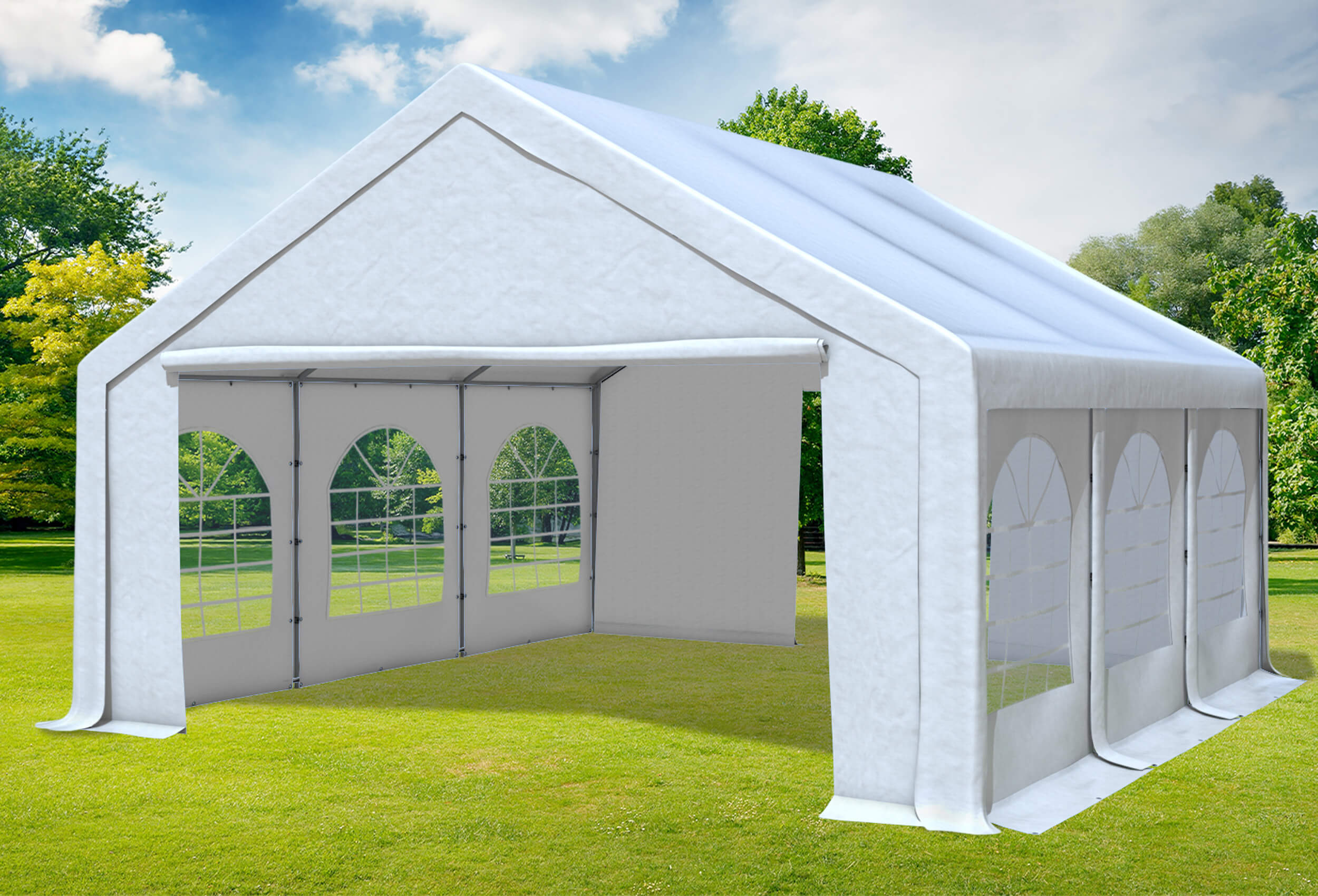 100 % waterproof - all tarpaulins heat-weldedNo sewn PVC - no dripping seams Strong 500 g/m² material thickness of the roof tarpaulin and side sections made of Professional PVC