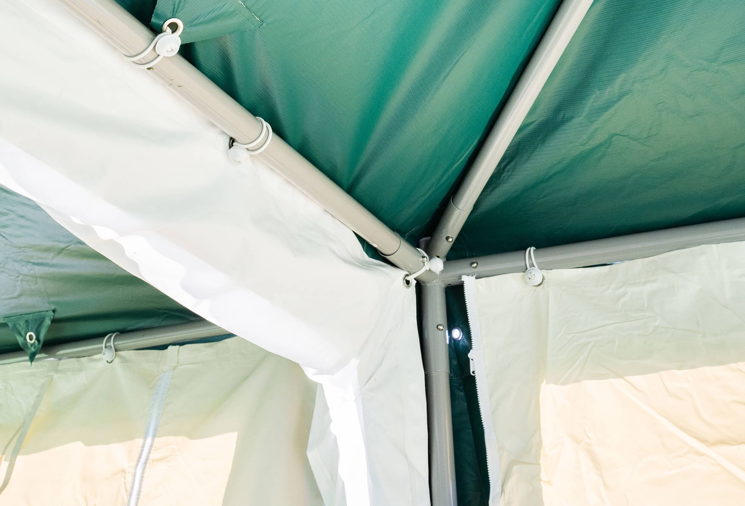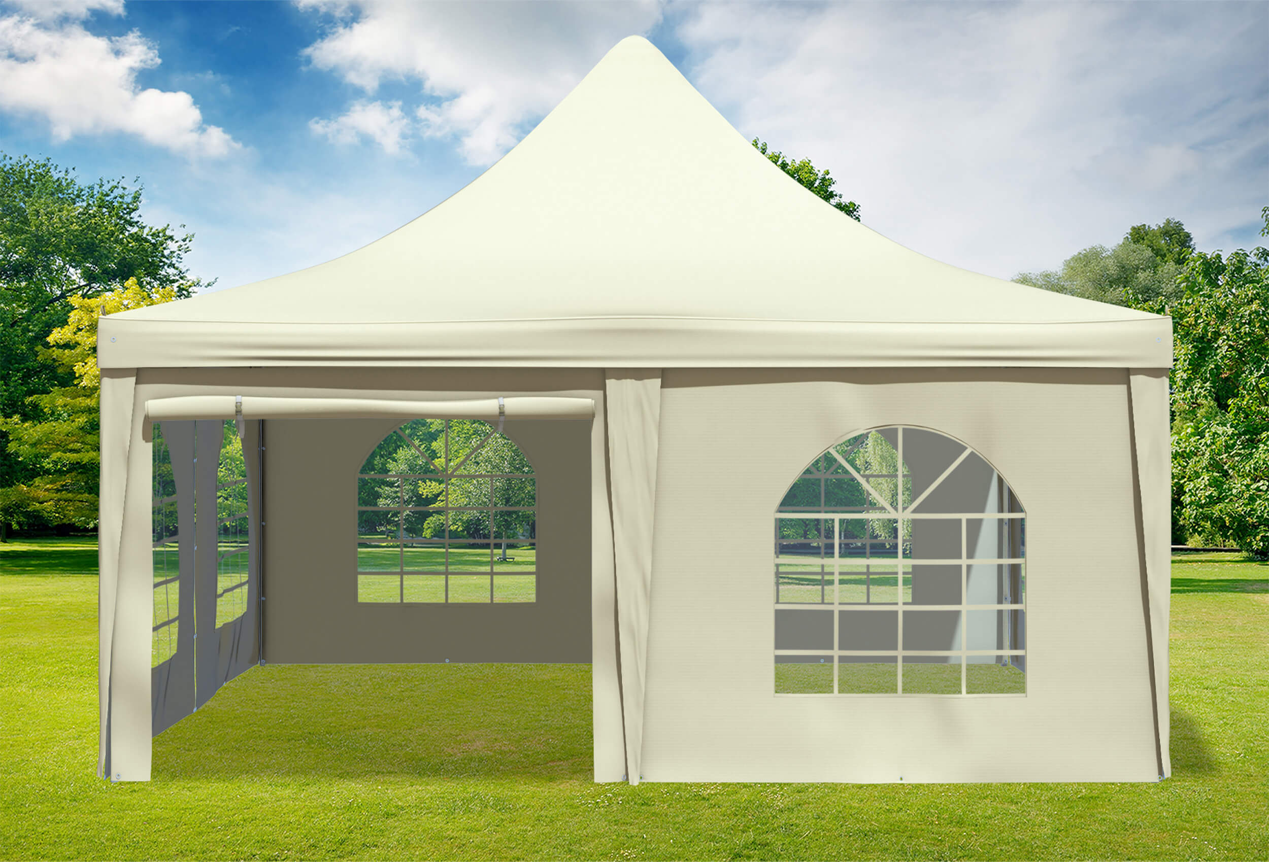 for regular or permanent use Genuine 400 g/m² material thickness of the roof tarpaulin and side sections made of premium PVC
