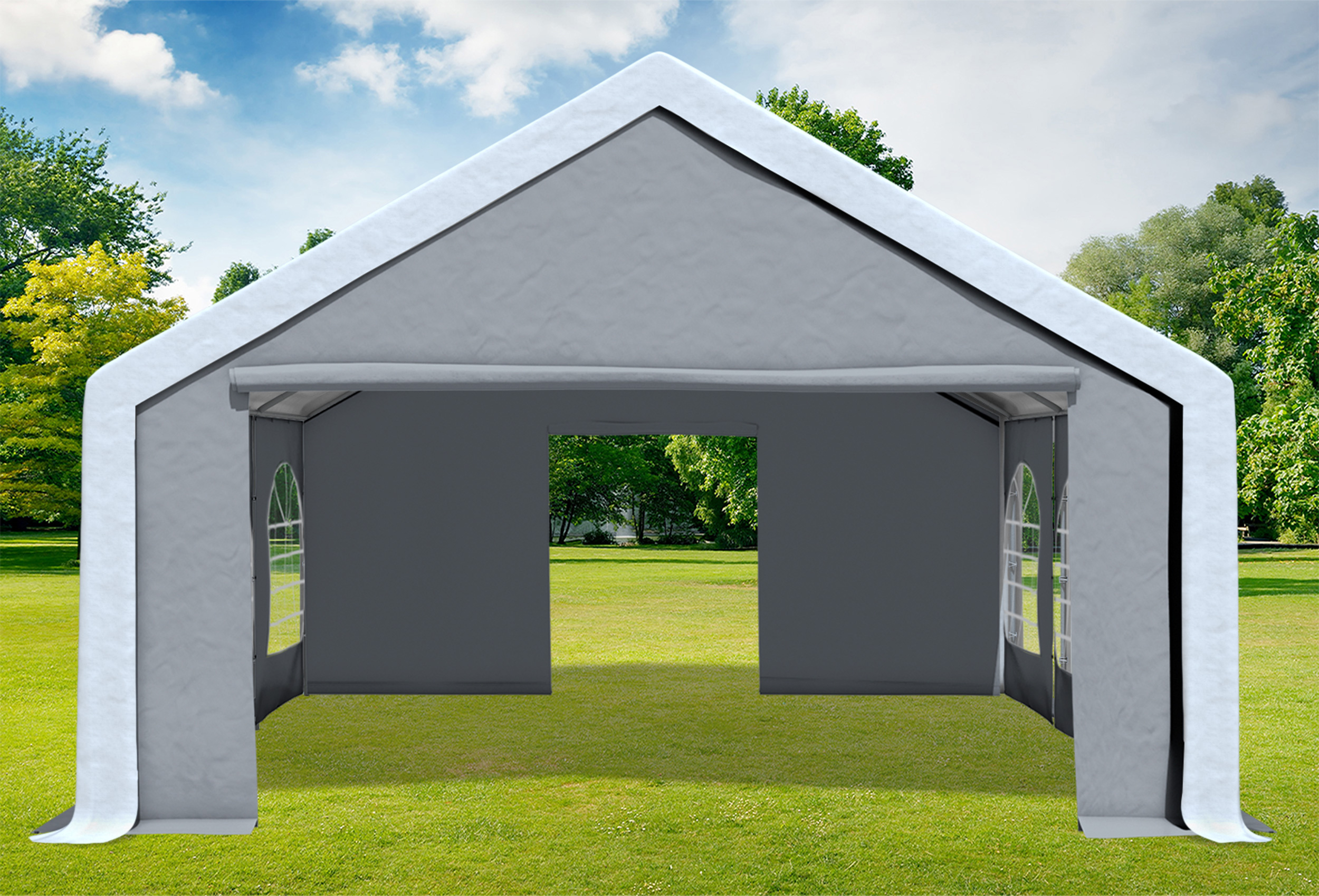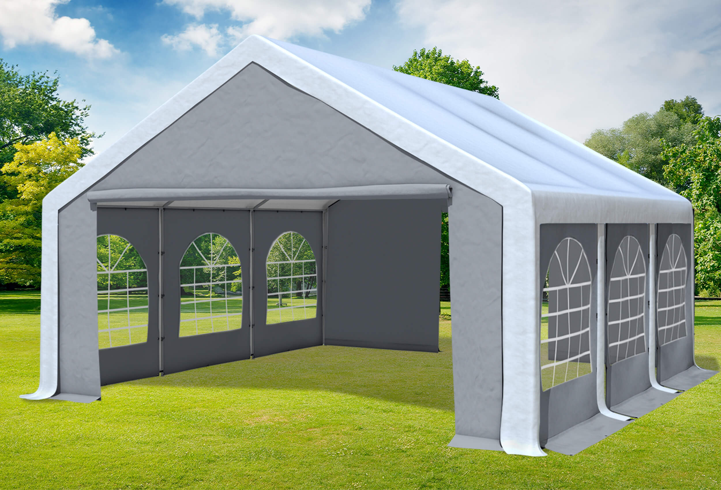 100 % waterproof - all tarpaulins heat-weldedNo sewn PVC - no dripping seams Strong 500 g/m² material thickness of the roof tarpaulin and side sections made of Professional PVC