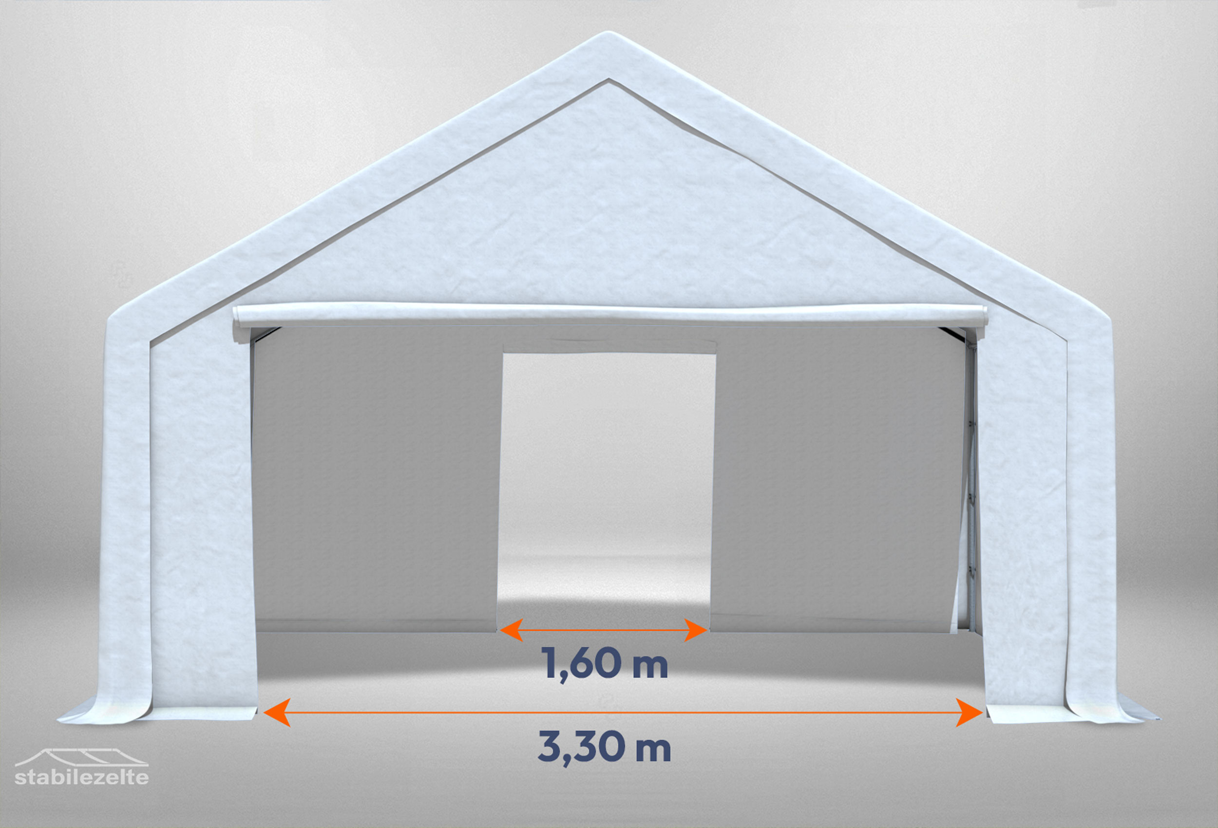 comparable to truck tarpaulin - glossy, smooth surface Roof tarpaulin in one piece - high stability 2 metre side walls for flexible entrances and use anywhere