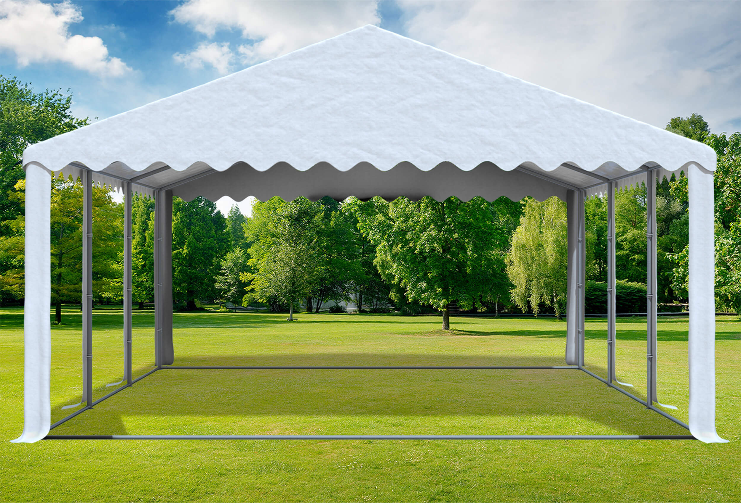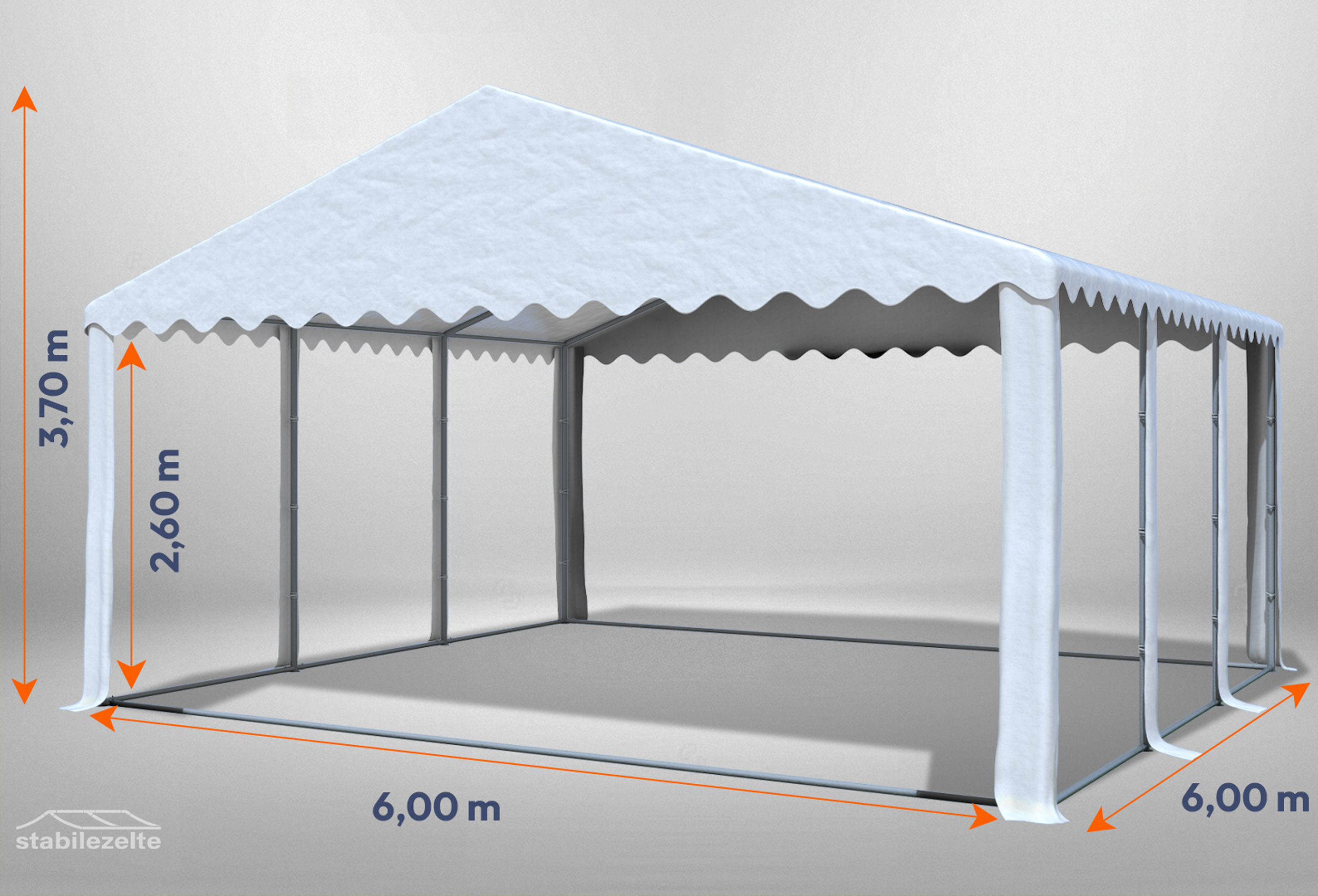 XXL side height 2.6 m with plenty of space at the topfor a real marquee atmosphere Stand poles not tapered