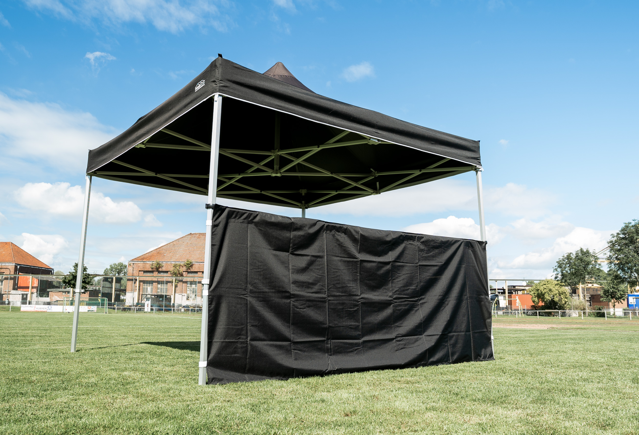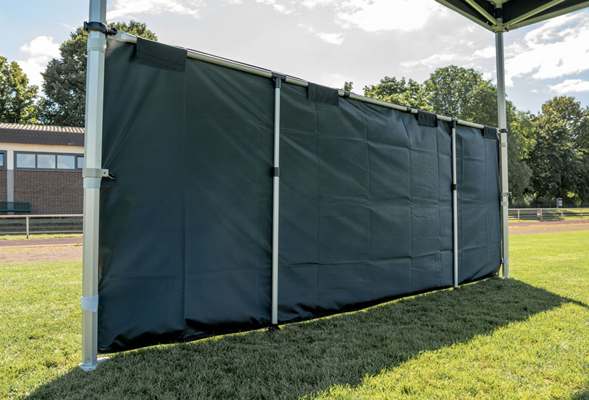 With this additional privacy screen, you have the option of fencing off part of your sturdy gazebo or covering your sales table.
